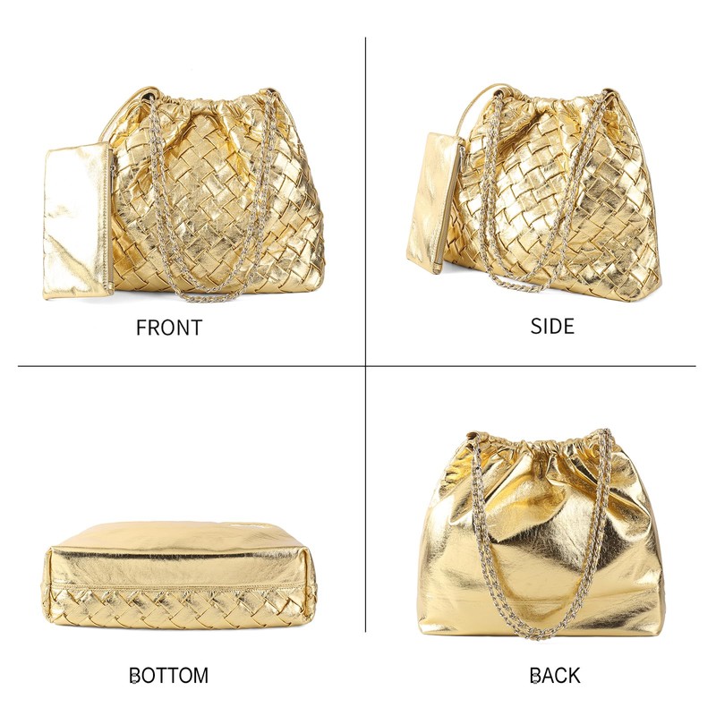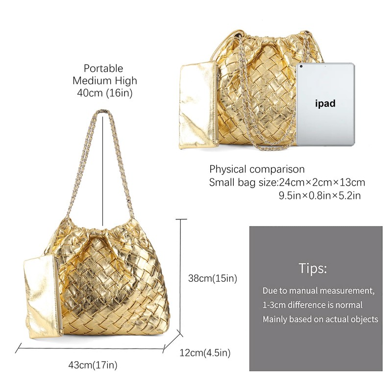 SHARPAD Woven Tote Bag for Women Purse: Large Capabilities Travel Totes - Soft Leather Shoulder Handbags(gold)