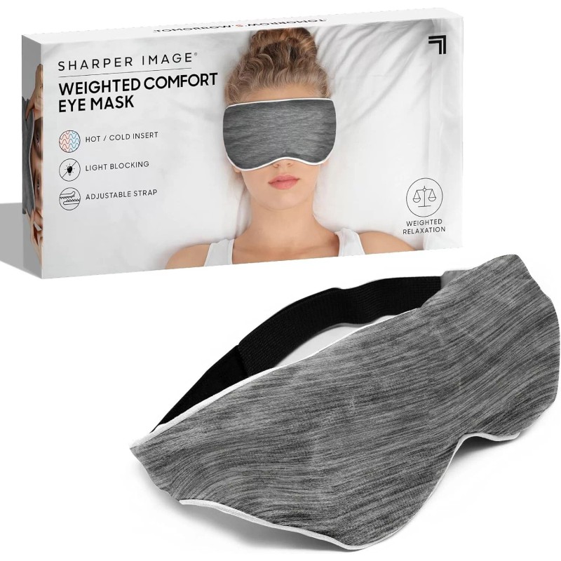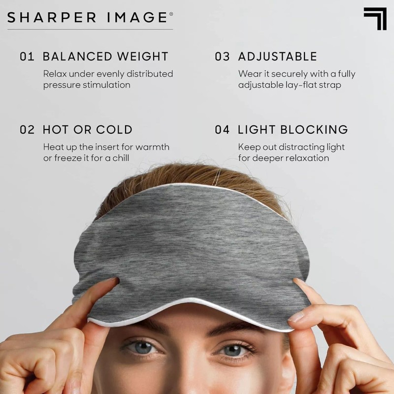 - ✔ WEIGHTED PAIN RELIEF: The Sharper Image Weighted Comfort Eye Mask applies pressure stimulation and blocks out light to relax the eyes and face, alleviating painful headaches and migraines ✔ Weighted pain relief ✔ Heat up or cool the gel insert ✔ Improve your REM sleep Soft micro-plush fabric