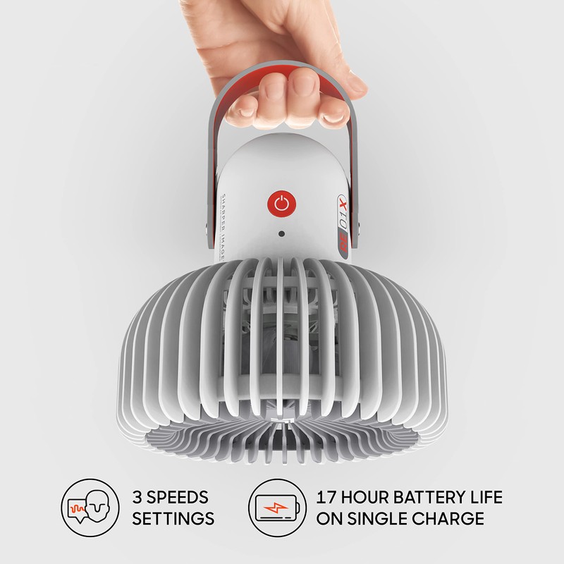 Sharper Image REFRESH 01X Rechargeable Personal Fan, Powerful Airflow, Quiet Operation, 17 Hours of Run Time on Low, Carry Handle, Portable Fan for Travel, Optimized Sound Signature, White