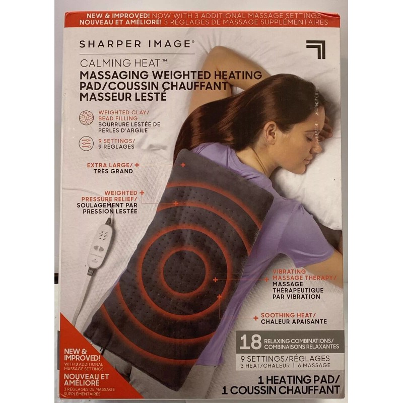 Sharper Image Weighted Heating Pad 9 Massaging Calming Heat Vibration 4lb 12x24