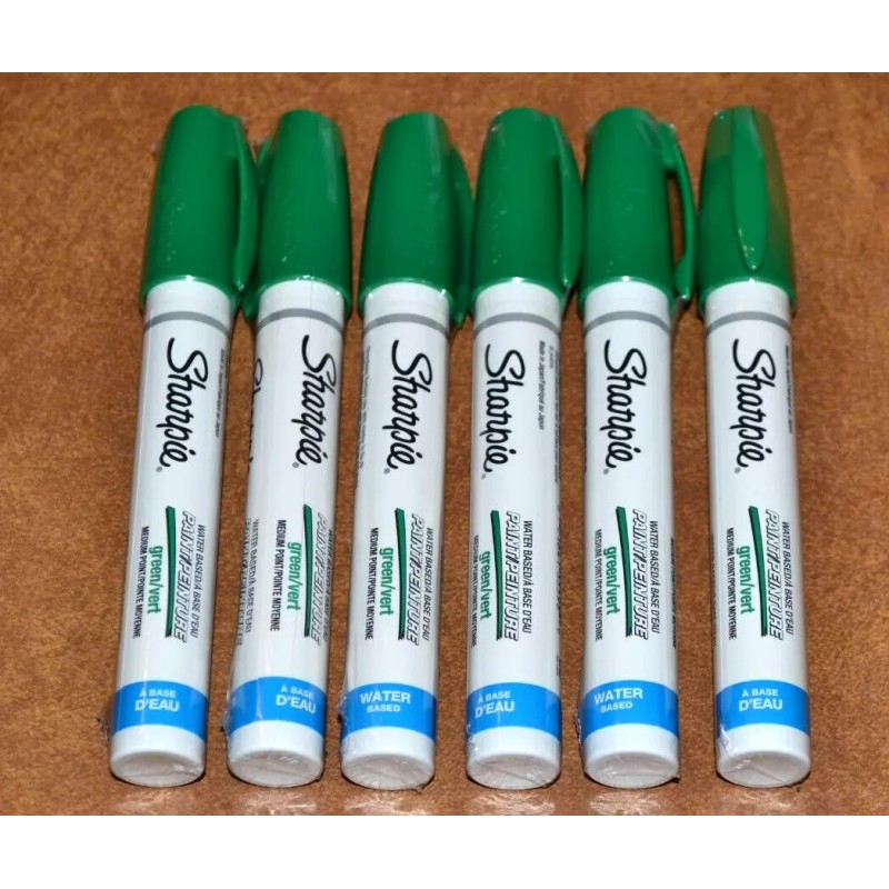 This listing is for 6 Brand New SHARPIE Water Based Green Medium Point Paint Markers. These markers are still sealed, brand new. Don't forget to purchase more if you need more than 6 as I have multiples of these markers.