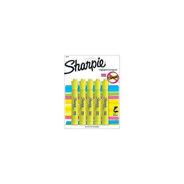 Sharpie Accent Highlighter Tank Style Chisel Tip Fluorescent Yellow, Pack of 5 (1809200)