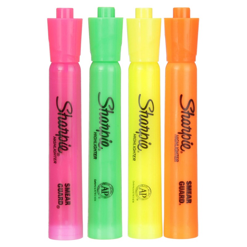 SHARPIE - Accent Tank-Style Highlighters Assorted - 4 Highlighters