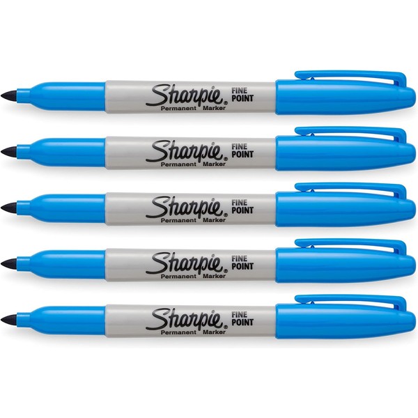 SHARPIE Blue, Fine Point Tip, Permanent Markers, 5-Count (Brilliant Blue)