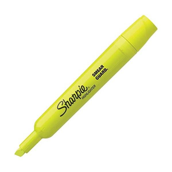 Sharpie Highlighter Smear Guard, Accent Tank, Yellow, 12-Count