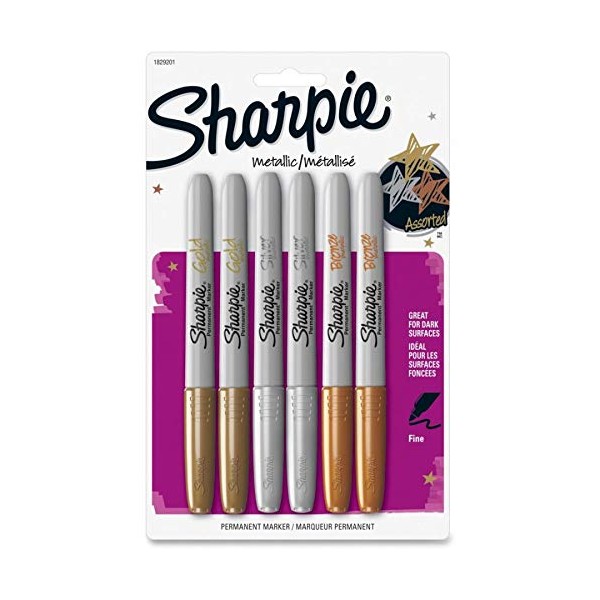Sharpie Metallic Permanent Markers, Assorted, 6/Pack