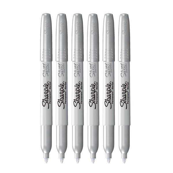 Sharpie Metallic Permanent Markers - Fine Point - Silver - Pack of 6
