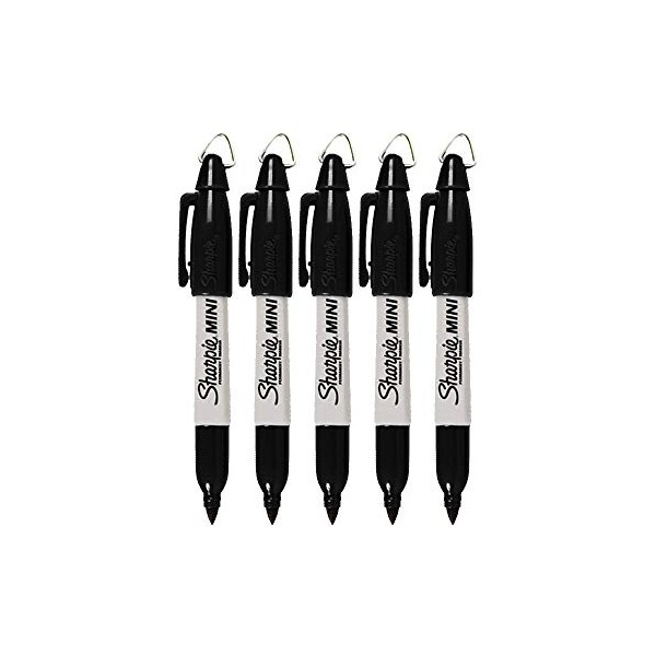 Sharpie Mini Permanent Markers with Golf Keychain Clips, Fine Point, Black Ink, Pack of 5