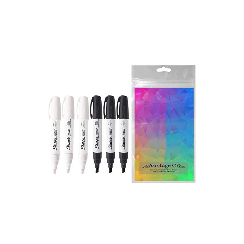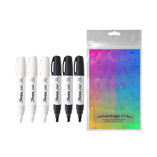 Sharpie Oil-Based Paint Marker, Bold Point, Black/White Ink, Pack of 6, Bundle with Plastic Reusable Pouch