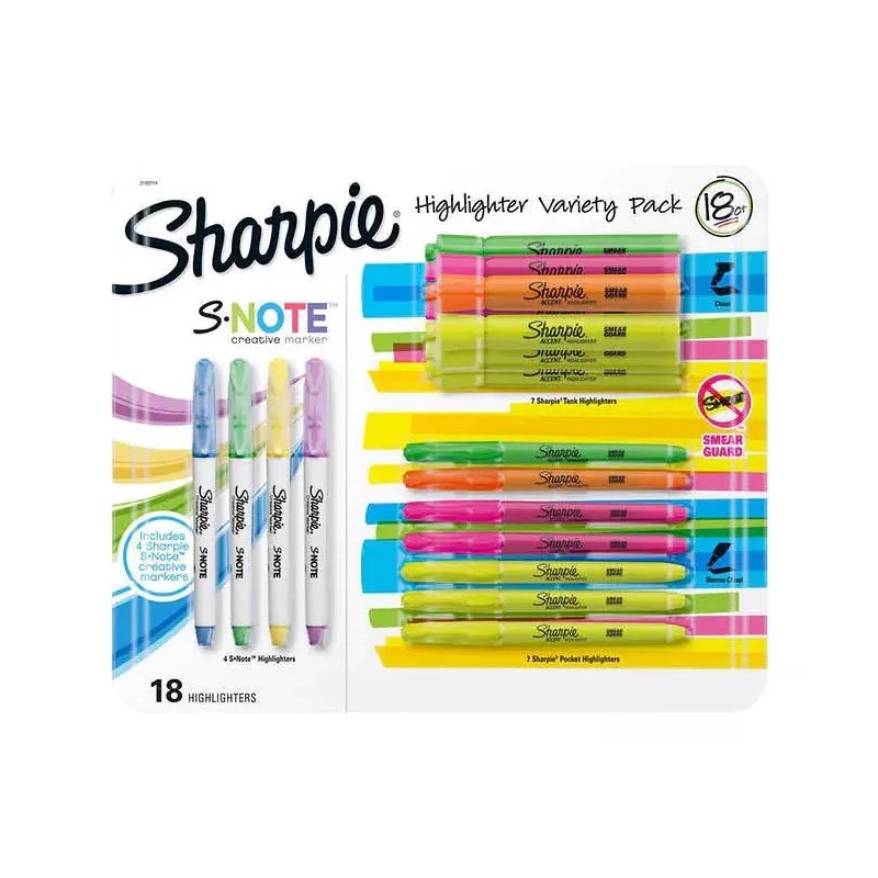 Sharpie Highlighter Variety Pack, 18-count, importado de USA!