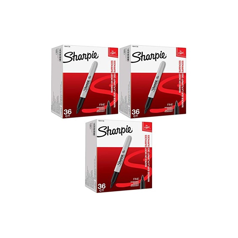 Sharpie Permanent Markers, Fine Point, Black, 36 Count Pack of 3