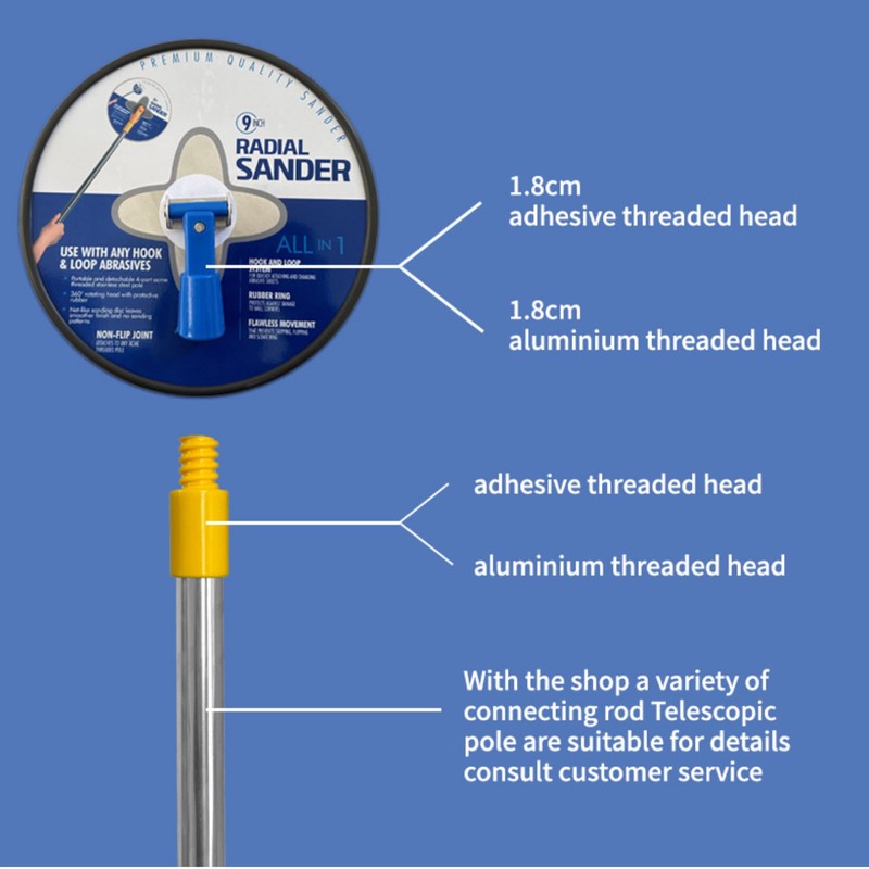 - 【360 Degree Rotation】: The 9 inch radial round head wall sander, 360° rotating, can easily adjust the angle to suit different working needs, easy to operate
