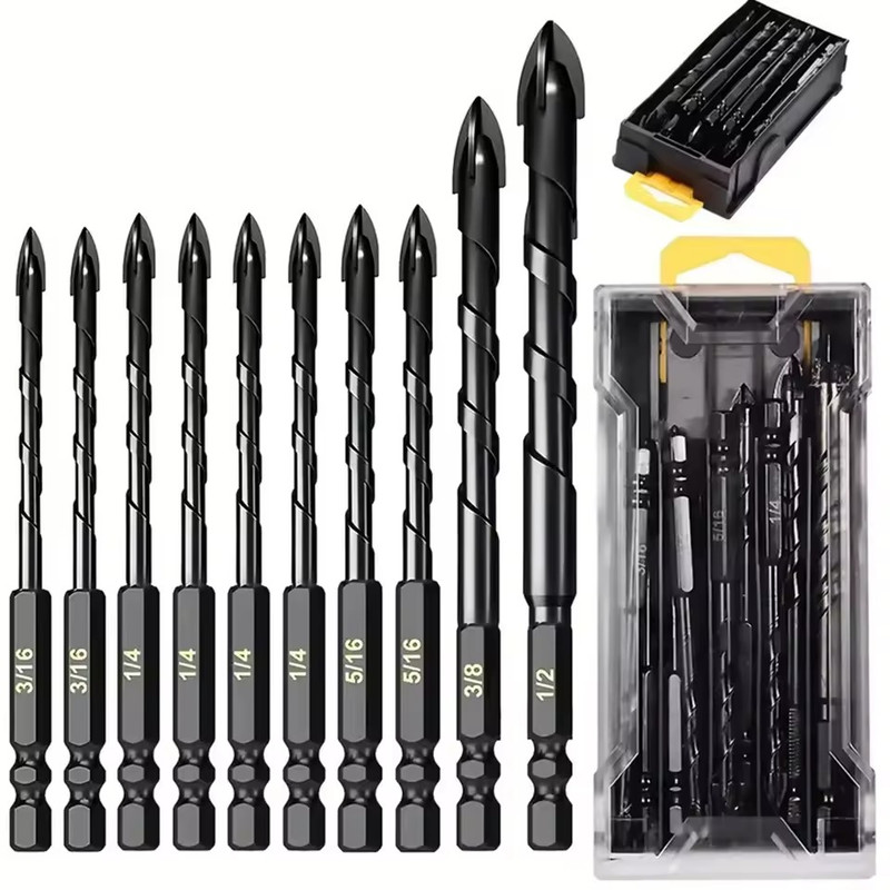 10 Pcs Masonry Concrete Drill Bit Set – Multi-Material Precision Drilling