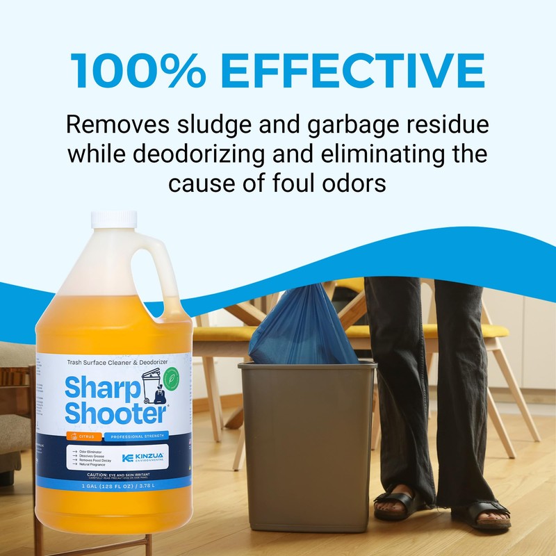 KINZUA ENVIRONMENTAL Sharpshooter, Heavy-Duty Trash Can Odor Eliminator & Degreaser, Garbage Surface Cleaner and Deodorizer Foam, Professional-Grade, Fresh Citrus Scent, 1 Gallon