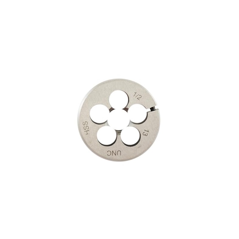 • Constructed as slotted round cutters with an adjusting screw that forces the side of the die apart, enabling the die to cut all standard classes of thread fit