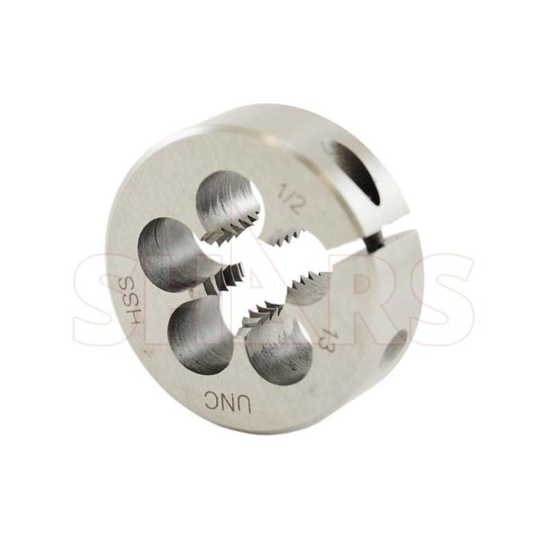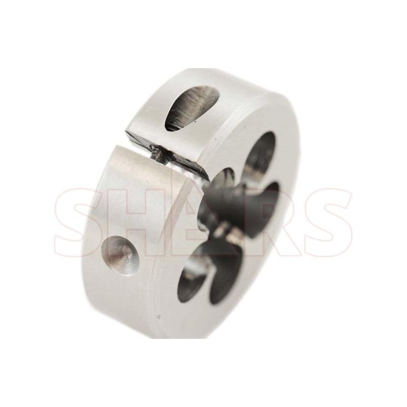 - Constructed as slotted round cutters with an adjusting screw that forces the side of the die apart, enabling the die to cut all standard classes of thread fit