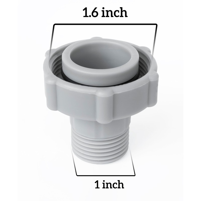 - Pool Drain Adapter 1.5 inch ID to connect to the bottom of the pool and 1.0 inch OD, connect to the 3/4 inch ID garden hose.