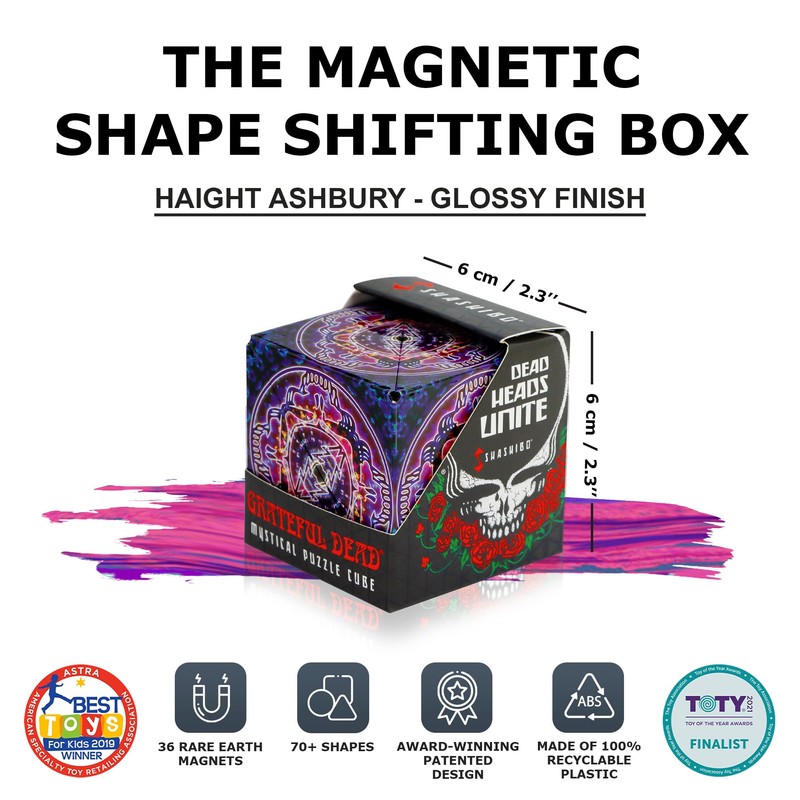 SHASHIBO Shape Shifting Box - Award-Winning, Patented Fidget Cube w/ 36 Rare Earth Magnets - Transforms Into Over 70 Shapes, Download Fun in Motion Toys Mobile App (The Grateful Dead-Haight-Ashbury)
