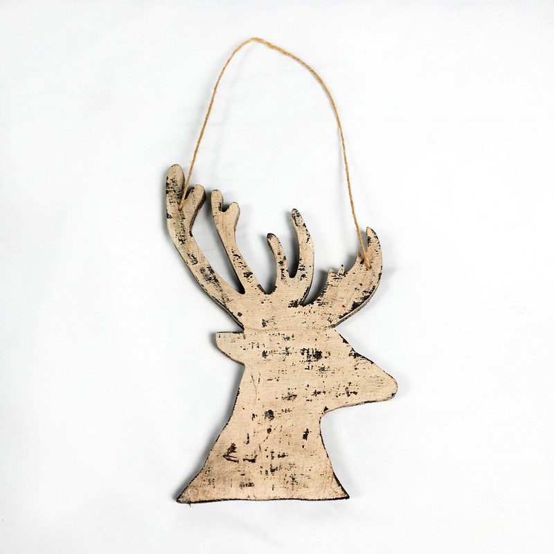SHATCHI 26cm Christmas Wooden Hanging Cream Side Face Deer Wall Decoration Xmas Home Office Holiday Decorative Centrepiece 17 x 26H CM