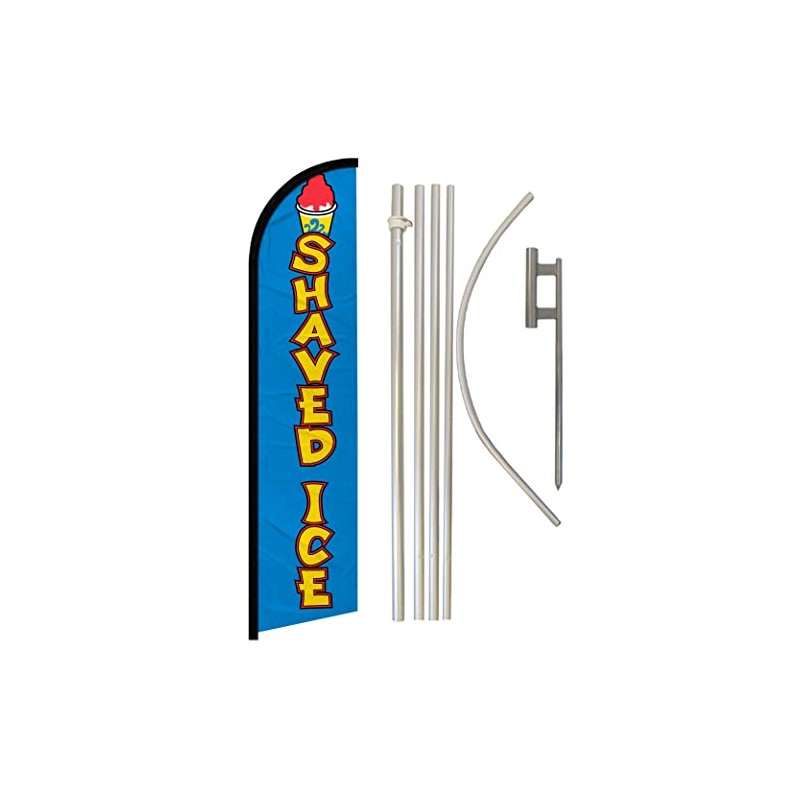 Shaved Ice Windless Banner Advertising Flag & Pole Kit - Perfect for Food Trucks, Theme Parks, Carnivals