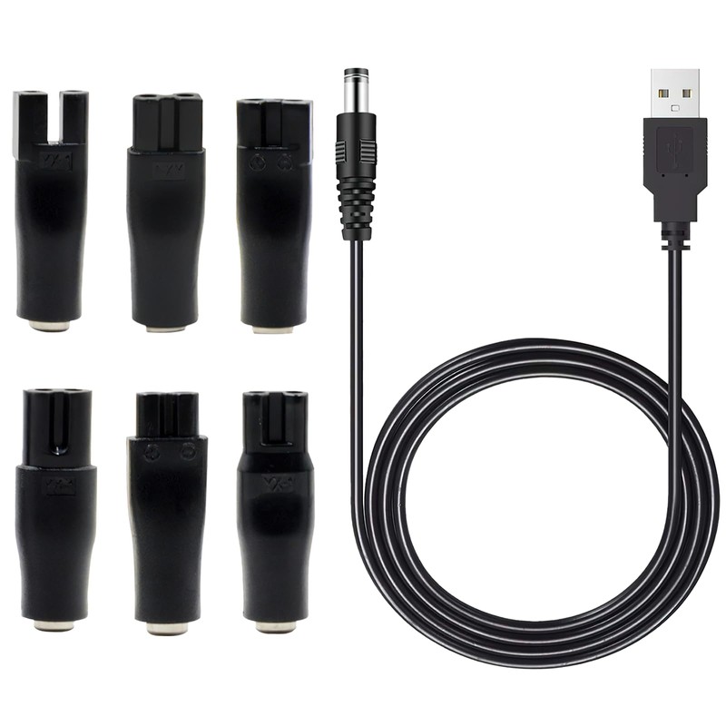 - Cost-effective Package The product includes 6 adapter plugs, universal USB to DC cable, the 6 universal adapters are compatible with 99% of electric shavers on the market. Lawnmower Charger. You only need to buy a charger to charge all the products of the same type you own, a very useful product. !