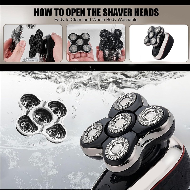 - EFFICIENCY:5 Dual Track Shaver Heads,Shaven Head In Under 2 Minutes