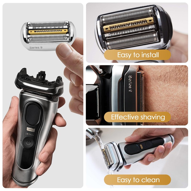 - Improved Series 9: The shaving head of the 92M is made of high-quality stainless steel and ABS, has a chrome-plated appearance and uses a unique improved foil cutting technology to shave hair below 0.05 mm. Carefully equipped with four high-tech cutting elements, it can make shaving more thorough and gentle, and improve the efficiency of hair cutting. Due to its excellent durability, the shaving head does not need to be replaced after prolonged use.