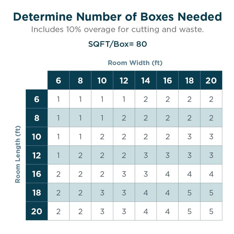 - Twenty 24 in x 24 in tiles with 80 ft² of coverage per carton