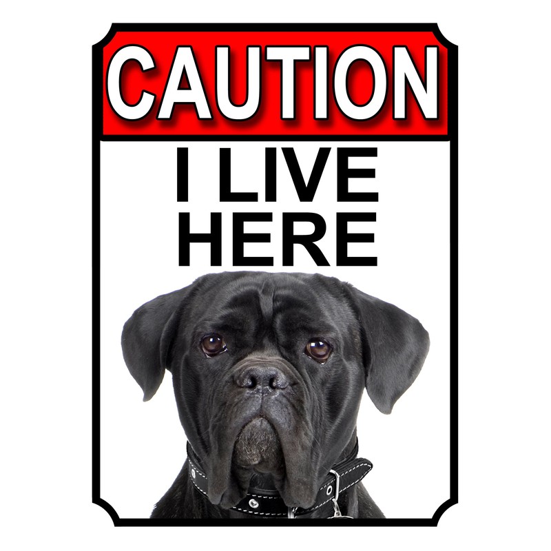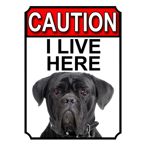 Shawprint CAUTION I LIVE HERE METAL GATE SIGN CANE CORSO THEME 200MM X 150MM (1392H1)
