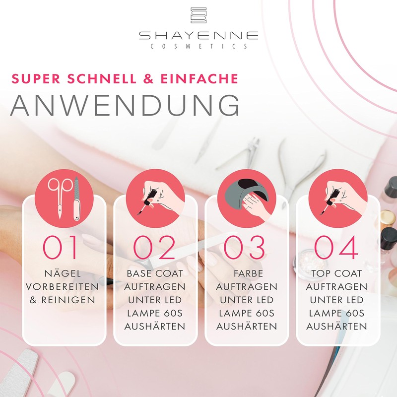 - UMWELTFREUNDLICH - Shayenne Shellac UV Gellack / LED Nagellack ist zu 100% frei von Tierversuchen & ohne schädliche Inhaltsstoffe. Unser hochwertiges Shellac Gel ist ideal für Naturnägel, Gelnägel, Acrylnägel und Tips.