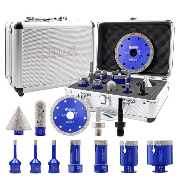 SHDIATOOL Diamond Tile Drill Bits Kit 12pcs, Porcelain Hole Saw Sets, Core Bits Cutter for Drilling Ceramic Marble Granite (6/6/8/20/25/35/50/20MM/2/SDS/HEX/4.5“)