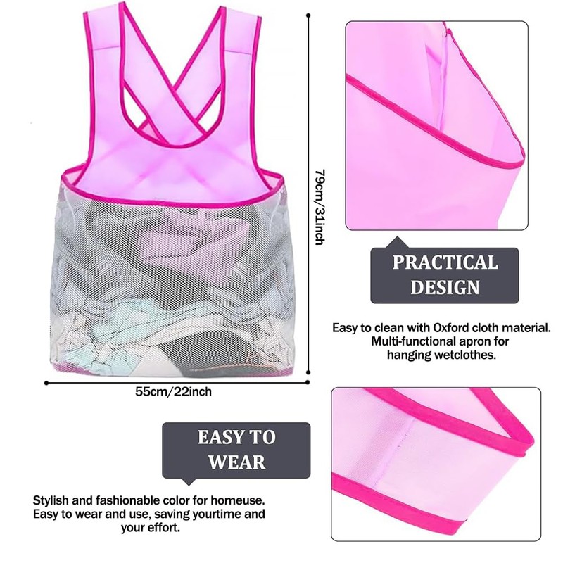 • Special Design The wide shoulder straps and cross design distribute the weight evenly and provide extra comfort and support. Put the washed or dried garments in your stomach, you do not need a basket, an apron with large pockets that allows you to hang your clothes while standing, let us protect the body!