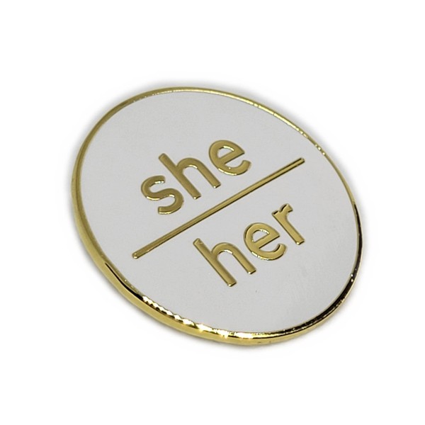 She Her Pronoun Pin White & Gold Hard Enamel Pronoun Button | Lowercase Modern Minimalist Pronoun Pn