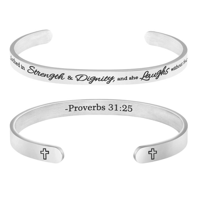 She is Clothed in Strength and Dignity and She Laughs Without Fears of the Future Christian Bracelets Religious Gifts for Women