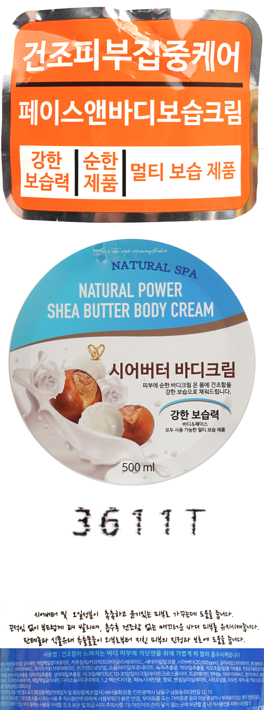 Shea butter face and body moisturizing body cream 500ml / 시어버터 페이스바디겸용 보습 바디크림 500ml