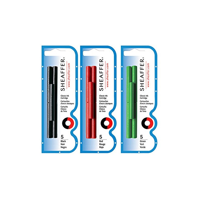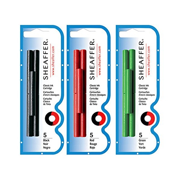 Sheaffer 5 Black, 5 Red & 5 Green Cartridges Bundle
