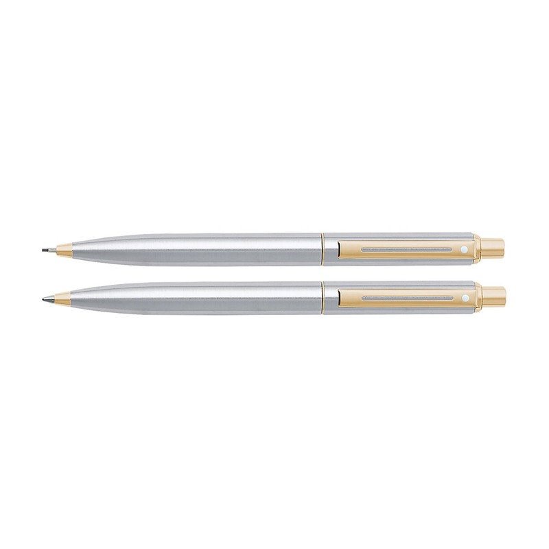 Sheaffer Sentinel, Brushed Chrome Cap & Barrel, Gold Plate Trim, Ball Point Pen & 0.7mm Pencil Set (E932551DC)