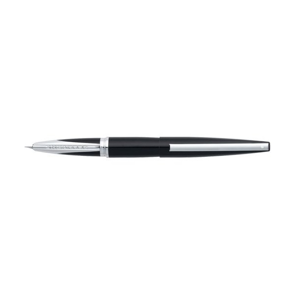 Sheaffer Pen's history is an authentic American tale inspired by craftsmanship, originality and value. In 1912, Walter A. Sheaffer risked his life savings to start the company, believing that his invention, the first practical lever-filling fountain pen, was better than anything on the market. Sheaffer continues this tradition 100 years later with the new Taranis - an elegant design that merges history with modern technology. Designed by renowned U.S architect Charles Debbas, the groundbreaking pen is named after the Celtic God of Thunder echoing its power and sleek style. Taranis features a unique patent-pending grip design that integrates resin with the strength of metal. Its elongated clip has an internal spring for great flexibility and firm pocket placement. Sheaffer fans will love the smooth-writing hooded fountain pen nib in stainless steel. Steal some thunder with Sheaffer Taranis. Sheaffer Taranis Chrome Trim Fountain Pen Features: Named after the Celtic God of Thunder for its powerful presence Comfortable patent-pending grip Created by Charles Debbas, an innovator much like Walter A. Sheaffer himself Hooded stainless steel nib Cartridge or converter fill