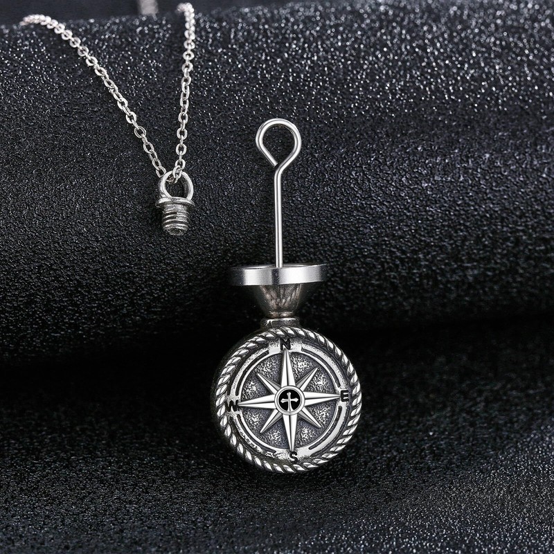 SHEAISRS Compass Necklace for Women Men 925 Sterling Silver Pendant Urn Neckl...