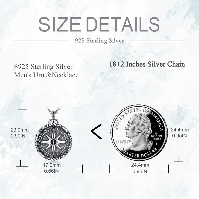 • Design:Compass urn necklace,Screws from the top of urn, allowing you to place a small amount of ashes in it,If you don't want/have ashes, you can also add crushed flowers, dirt, hair, sand and notepaper.