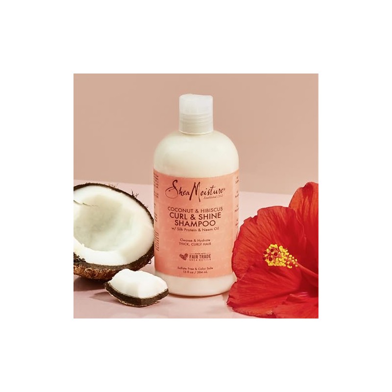 - The SheaMoisture Coconut Hibiscus Curl & Shine Shampoo gently cleanses without stripping essential moisture.