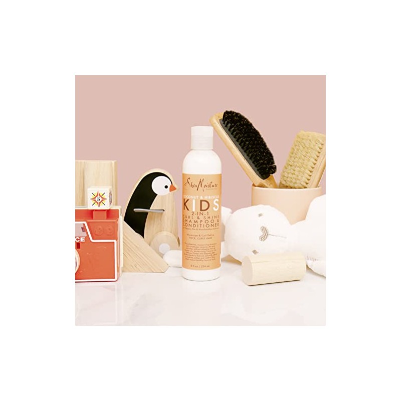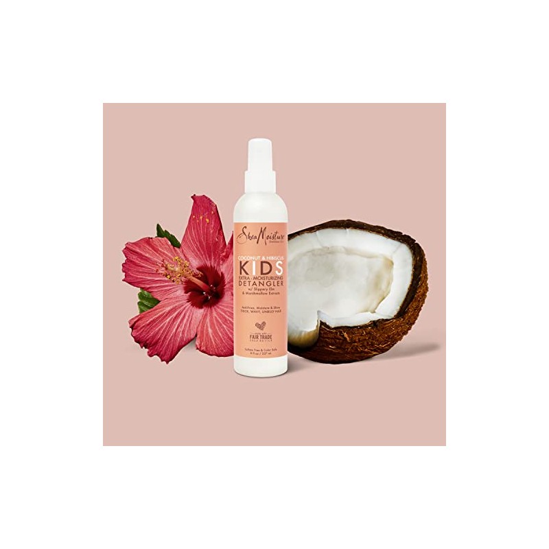 - SheaMoisture Coconut & Hibiscus Kids Extra Moisturizing Detangler adds volume to hair and moisturizes it from roots to ends, giving those kiddie curls extra bounce.