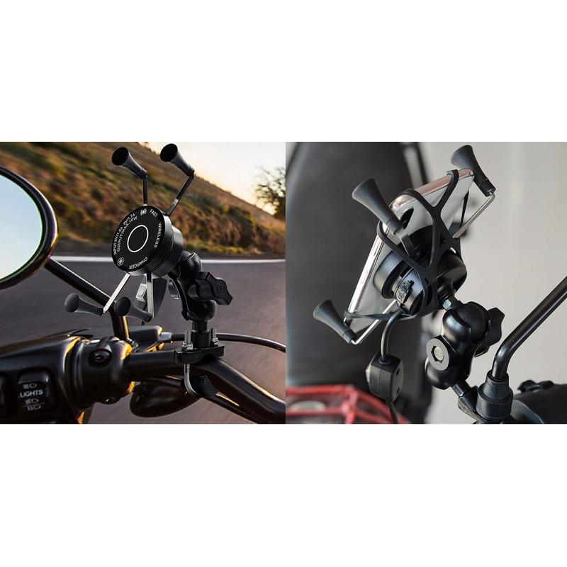 - Wireless charging motorcycle holder. Compatible with 9V - 30V motorcycles, snowmobiles, and more