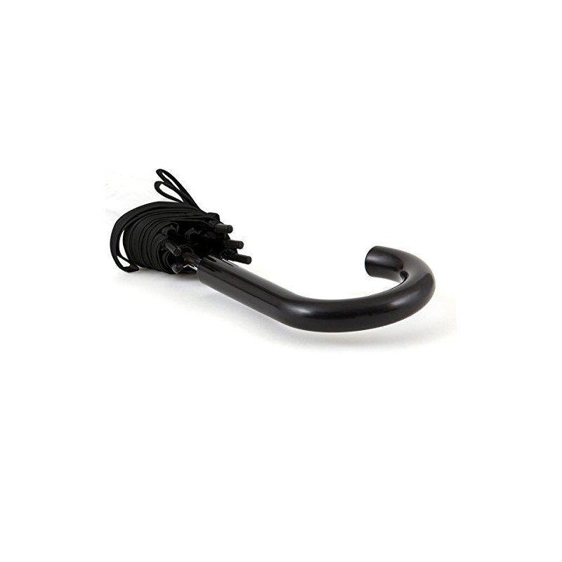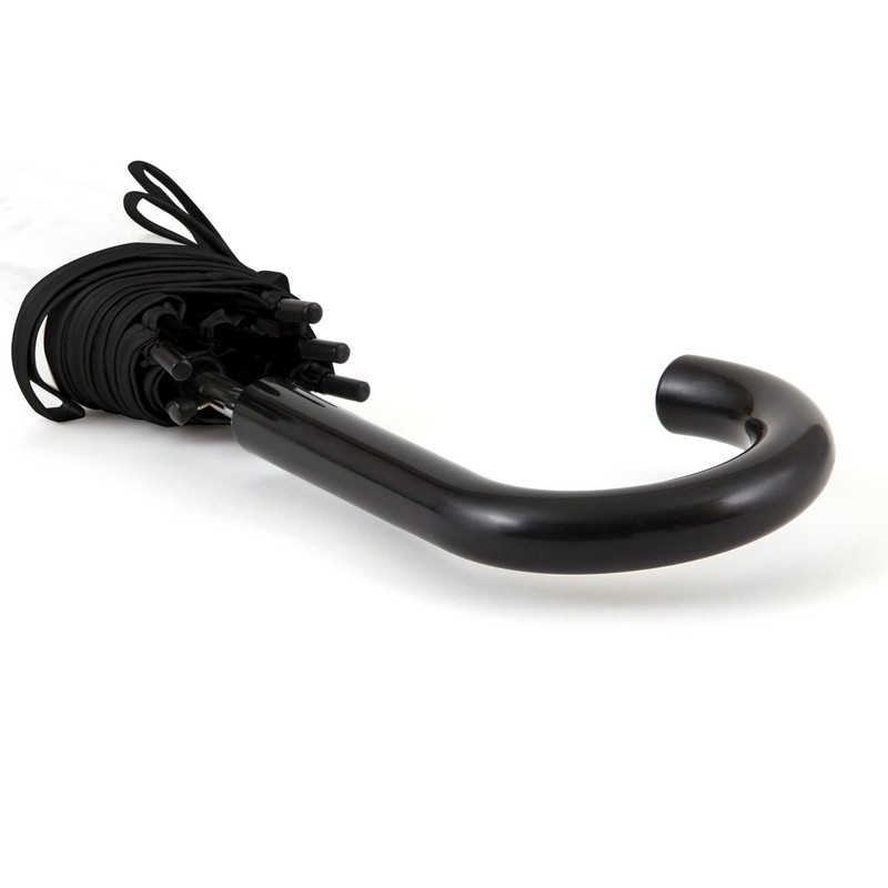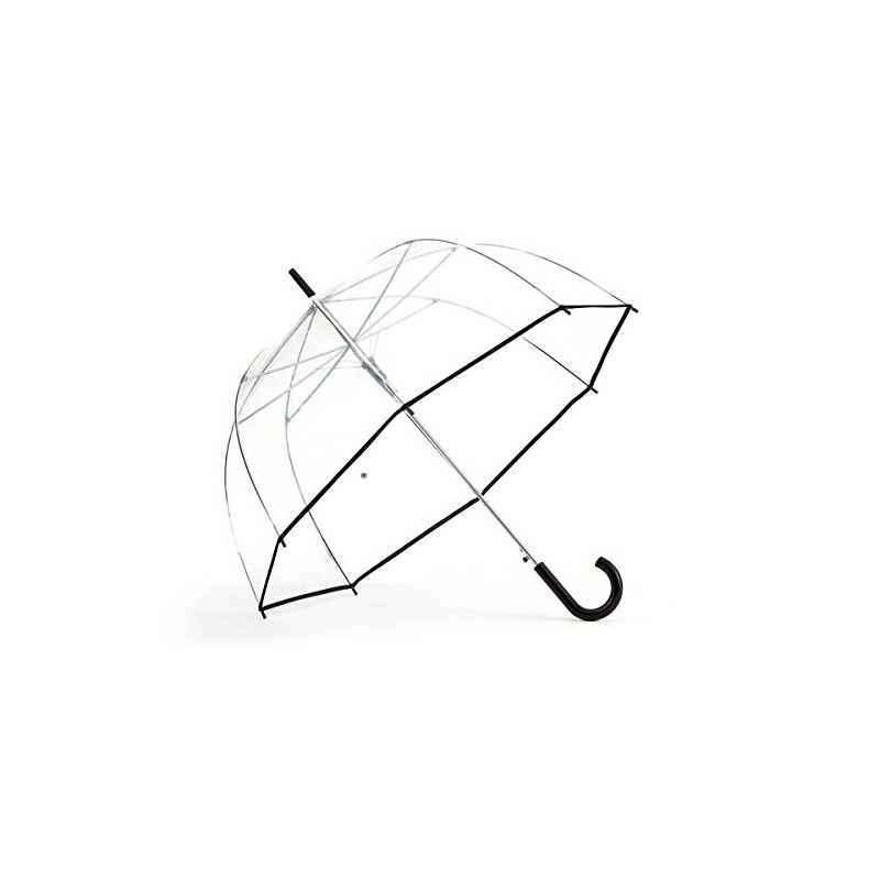 • A transparent dome with black binding around the edge of the canopy and a black high gloss plastic curved crook handle and matching shiny black ferrule.