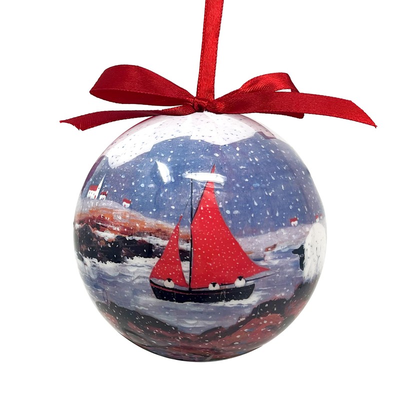 Sheep Christmas Bauble by Thomas Joseph - Ornament Ball Tree Decoration - I Saw Three Sheep Come Sailing