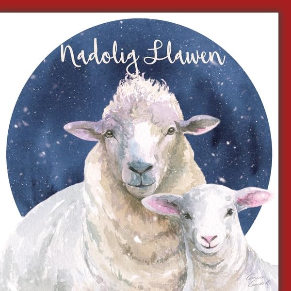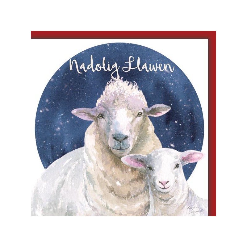 Sheep Nadolig Llawen Welsh language quality Christmas card - single