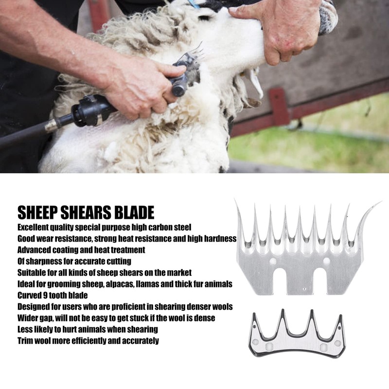 - [9 tooth] The curved 9 tooth blade is designed for users who are proficient in shearing denser wools. The gap is wider, and if the wool is dense, will not be easy to get stuck