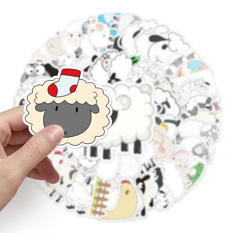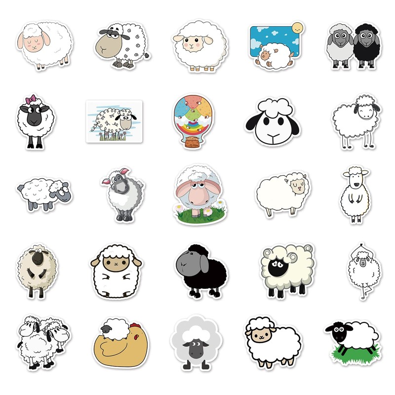 Sheep Sheep Sticker Set Children Teenagers 50 Pieces Animals Waterproof Vinyl Decals Laptop Skateboard Suitcase Helmet Car Bicycle Mobile Phone Motorcycle Bicycle Scrapbook Party Bag Diary Cups