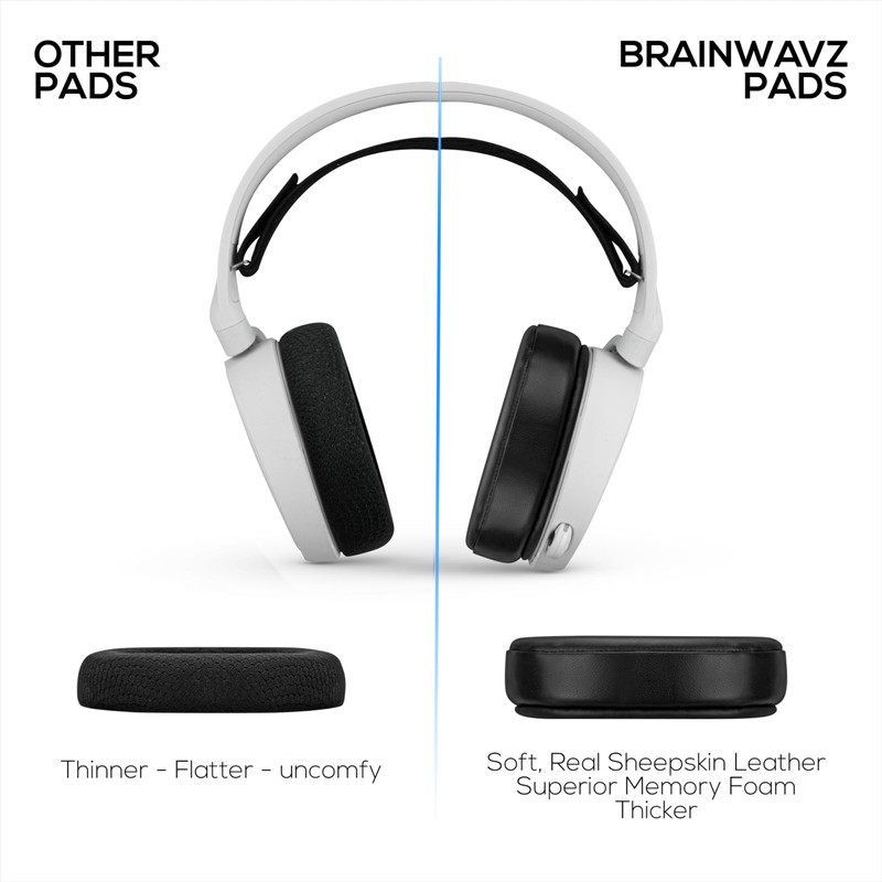 Sheepskin Earpads for Steelseries Arctis 1, 3, 5, 7, 9, PRO & Prime Headsets, Real Leather with Memory Foam - Thicker, Comfier & Long Lasting, by Brainwavz