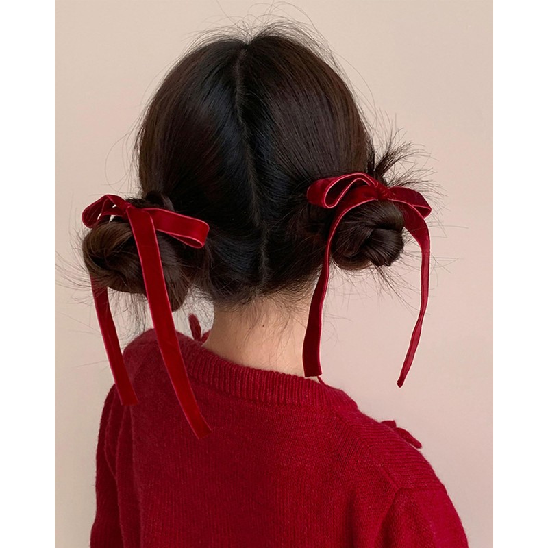 Sheepyo Velour Ribbon, Hair Band, Black, Velvet, Scrunchie, Hair Accessory, Hair Ornament, Ribbon, Red, Wedding, Stylish, Set of 4